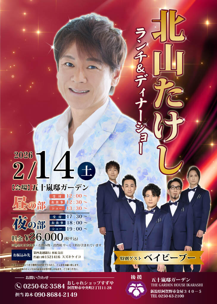 五十嵐邸ガーデン「北山たけし ランチ&ディナーショー」(ゲスト出演)